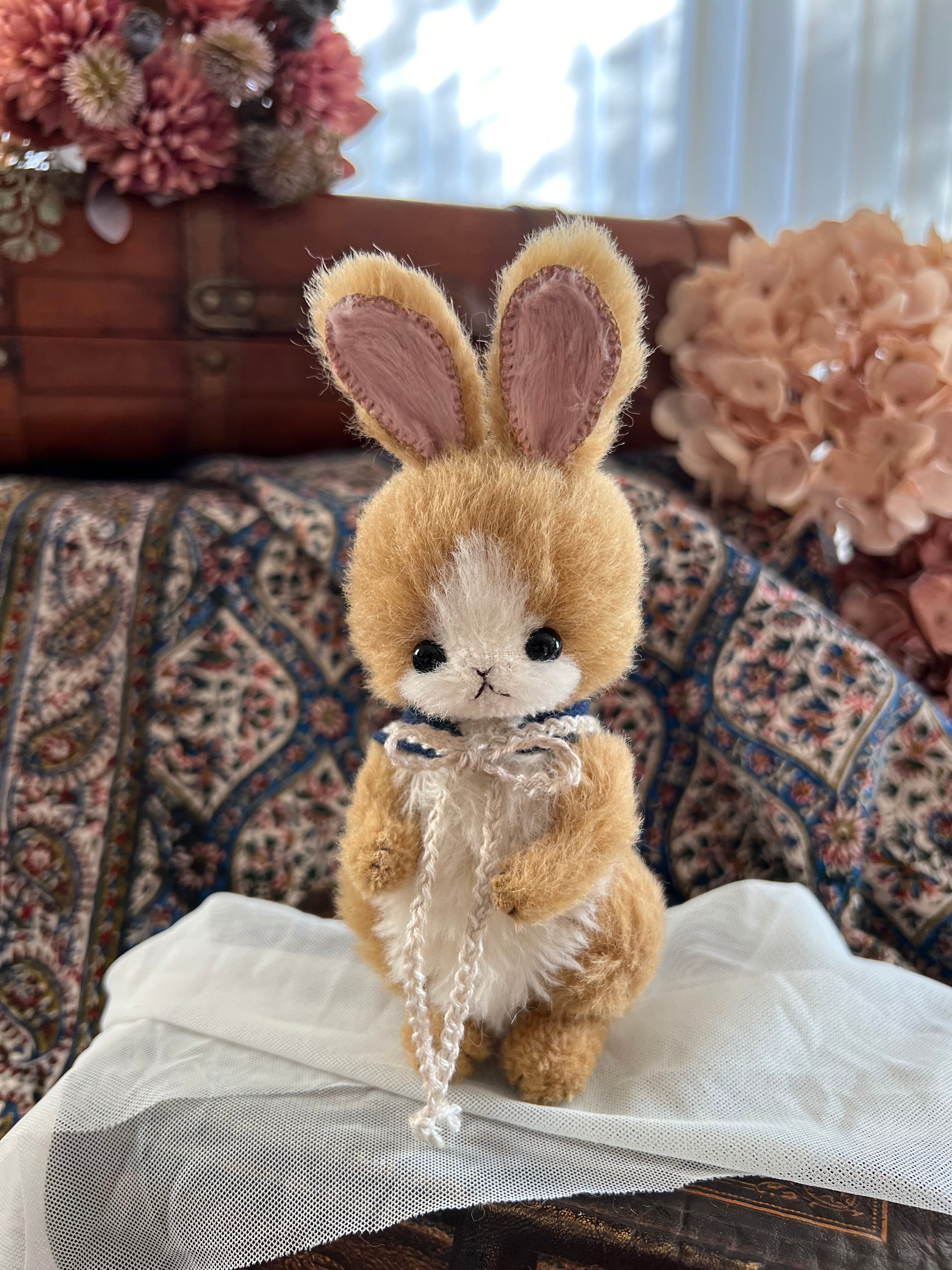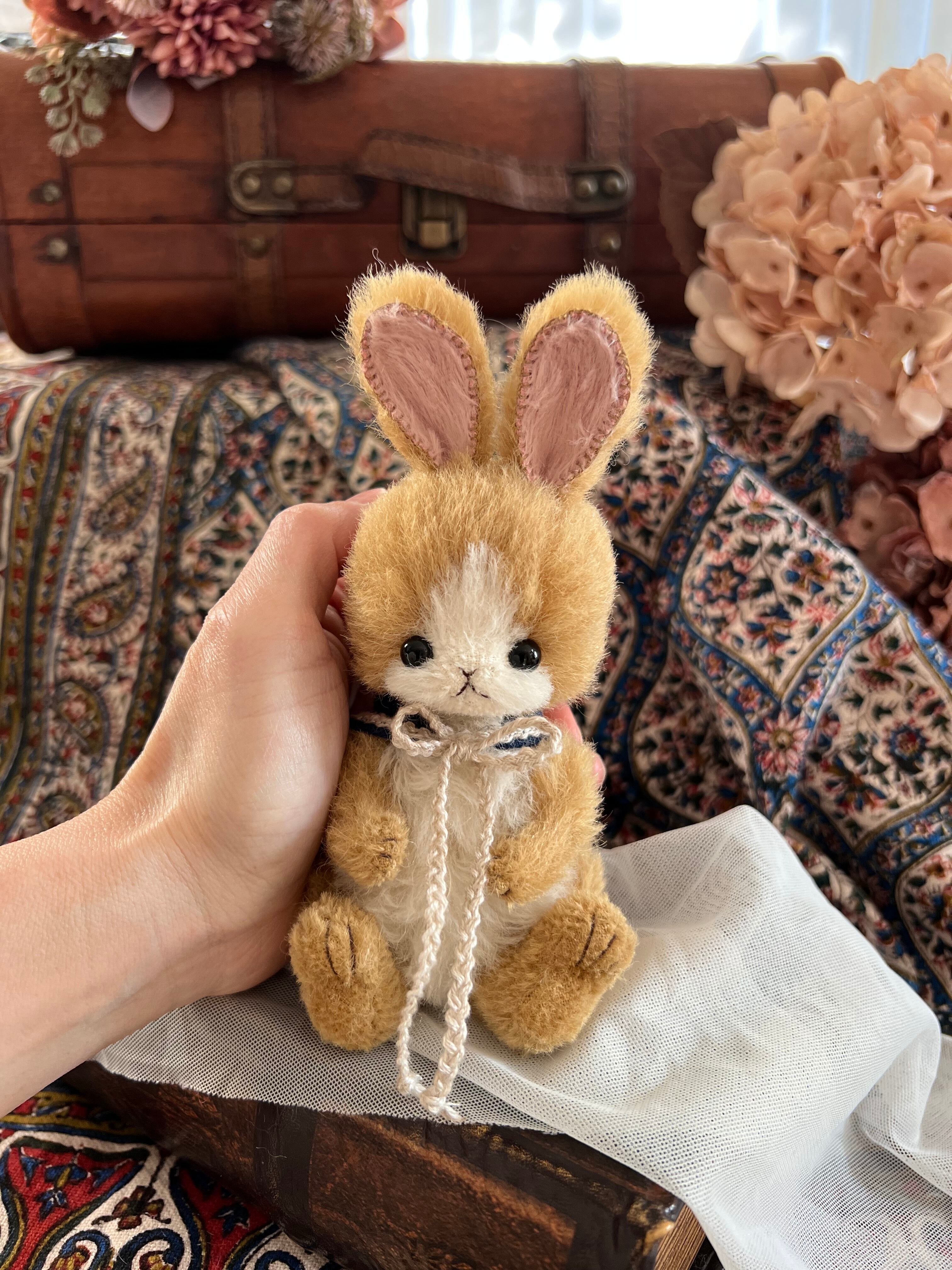 材料:アルパカ、ミニチュアファブリック、綿、ステンレスボール、グラスアイ、ハードボードジョイント